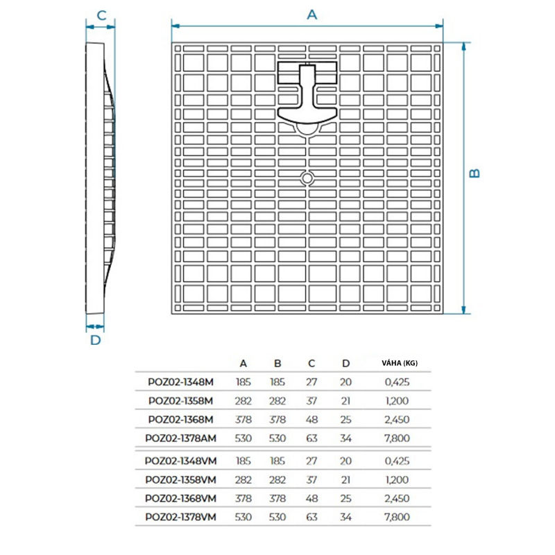 Poklop šedé barvy s madlem sloužícímu pro snadné vyjmutí je vyroben z polypropylenu. Poklop je určen pro osazení do revizních šachet, nebo rámů určených k zabetonování. Více