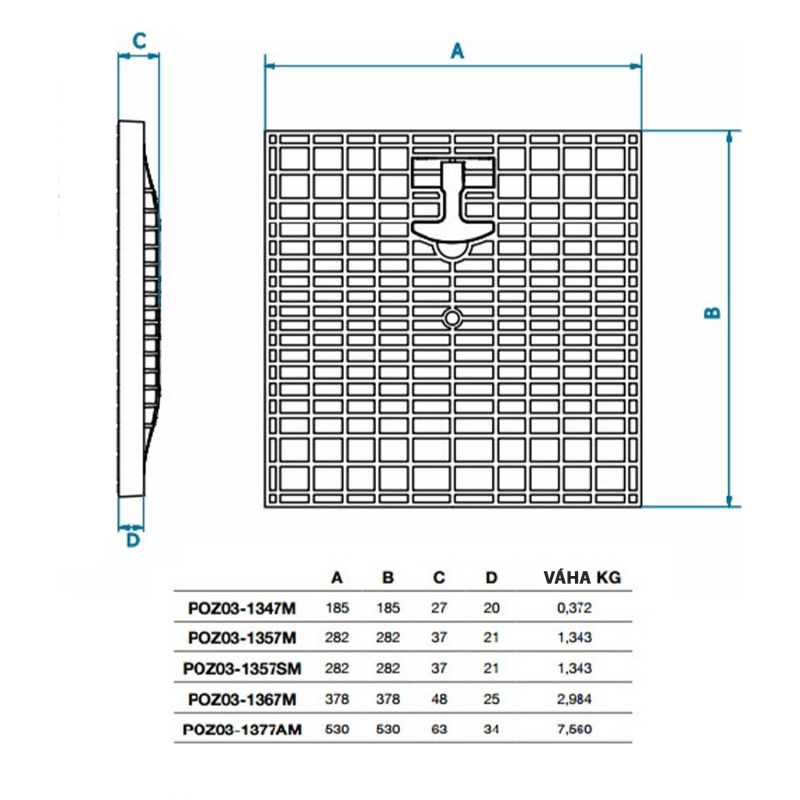 Rošt s madlem šedé barvy s madlem sloužícímu pro snadné vyjmutí je vyroben z polypropylenu. Rošt je určen pro osazení do revizních šachet, nebo rámů určených k zabetonování. Více